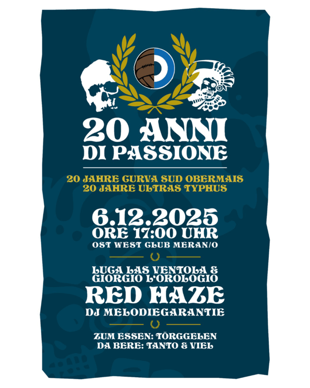 • 20 anni di passione - Curva Sud Obermais & Ultras Typhus - Luca Las Ventola & Giorgio L'Orologio / DJ Melodiegarantie & Red Haze in concert