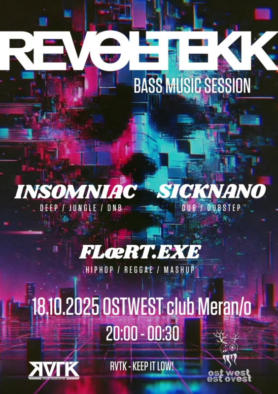 Am 18. Oktober ab 20:00 mit ReVoLtEkK – DJ-Sets, Bass und gute Vibes.