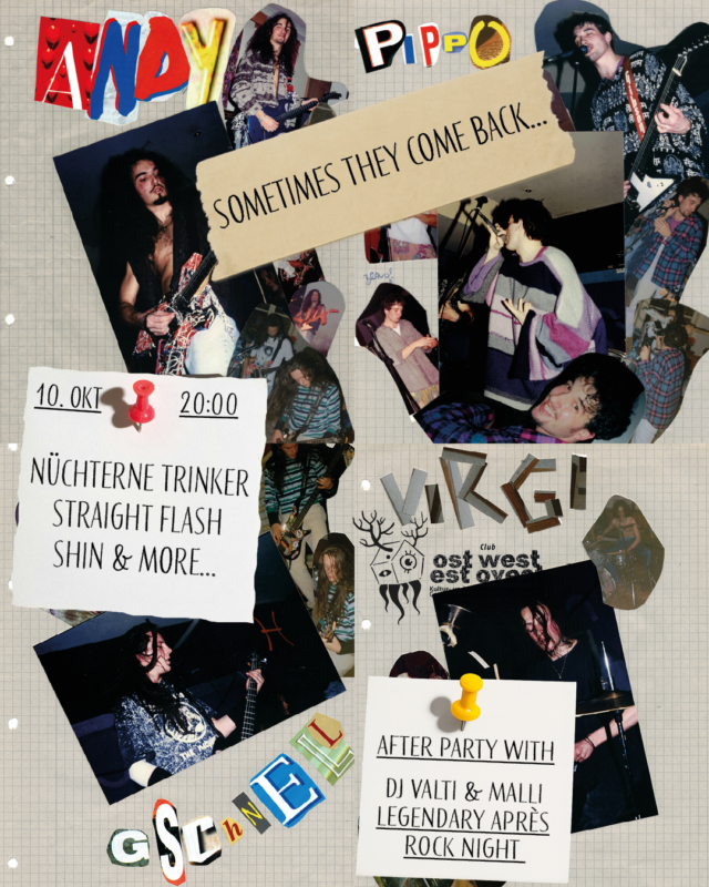 La leggendaria band Nüchterne Trinker torna finalmente sul palco dopo milioni di anni (più o meno). Insieme a loro: Shin, Marlene Basso, Straight Flash – e naturalmente Underwood Solo.